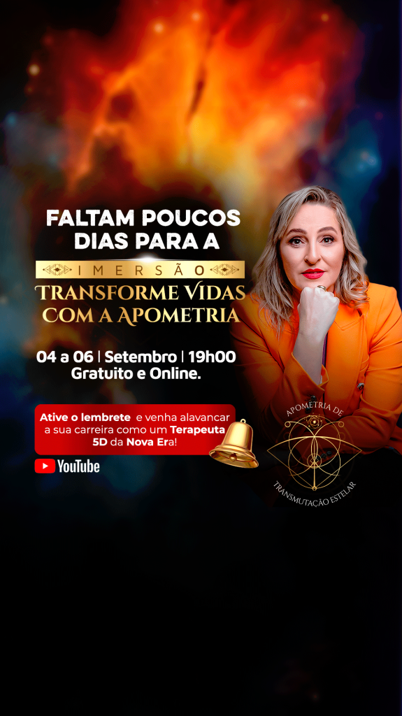 E se você quiser saber como fazer isso e dar o maior salto da sua vida, APERTE AQUI e participe gratuitamente do Transforme Vidas com a Apometria.